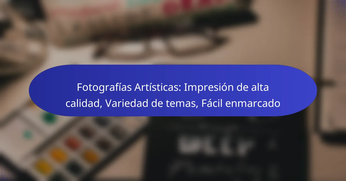 Las fotografías artísticas son una forma de expresión visual que captura momentos y emociones, convirtiéndose en piezas significativas para el arte y la decoración. Con impresiones de alta calidad que destacan por su detalle y precisión de color, estas obras permiten a los artistas explorar una variedad de temas, desde paisajes hasta retratos. Además, su fácil enmarcado las convierte en una opción accesible para embellecer cualquier espacio.